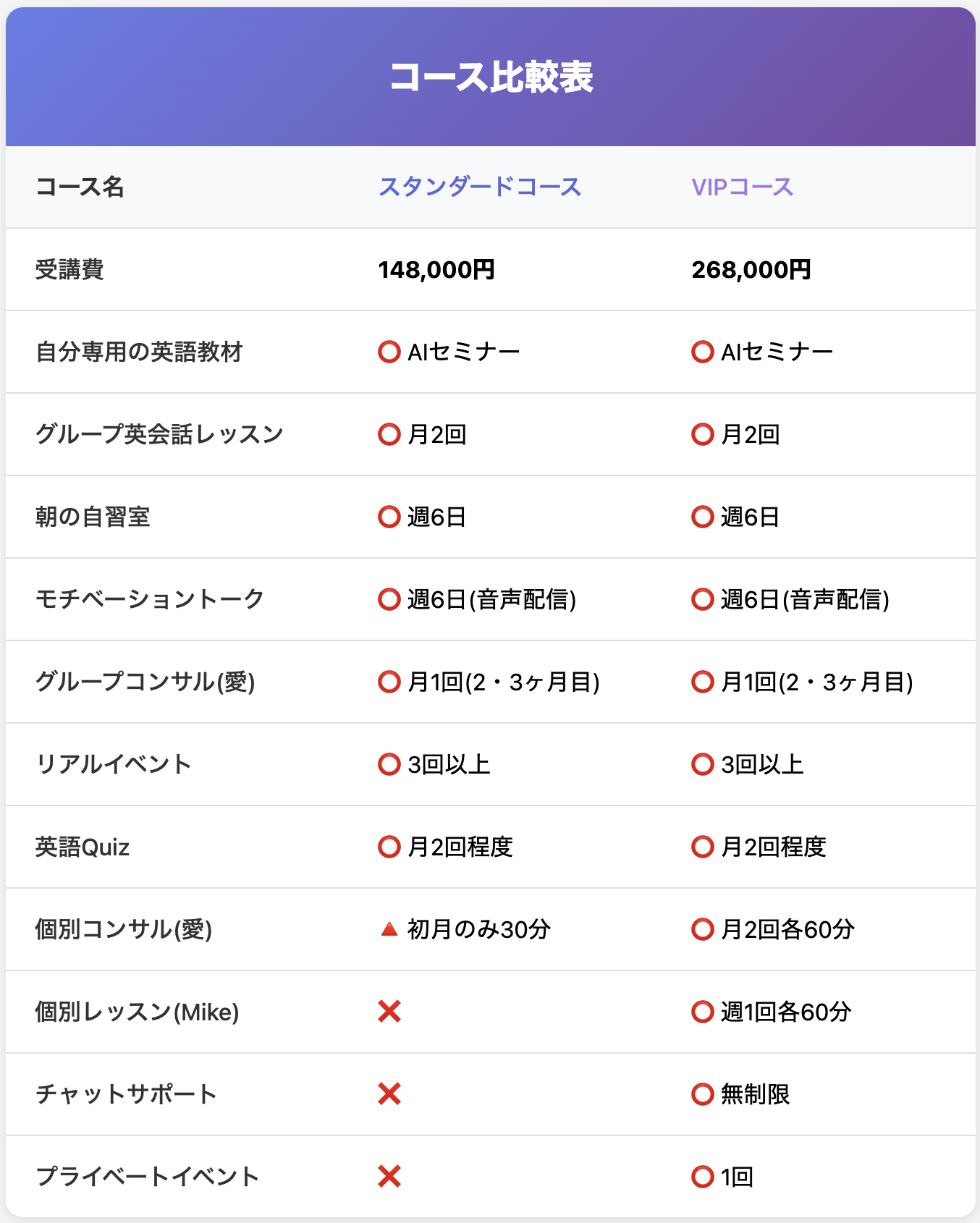 (参考:ネイティブ講師のグループレッスン、毎朝の自習室、個別・グループコンサル、リアルイベントがこの価格に含まれているのは、非常に稀です)