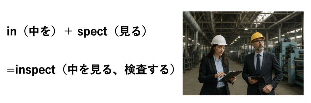 ・in(中を)+spect(見る)=中をじっくり見る